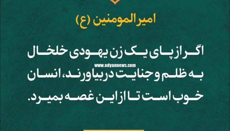 به گزارش ردنا (ادیاننیوز)، در این روایت از امیرالمومنین (ع) آمده است: اگر از پای یک زن یهودی خلخال به ظلم و جنایت دربیاورند، انسان خوب است تا از این غصه بمیرد.