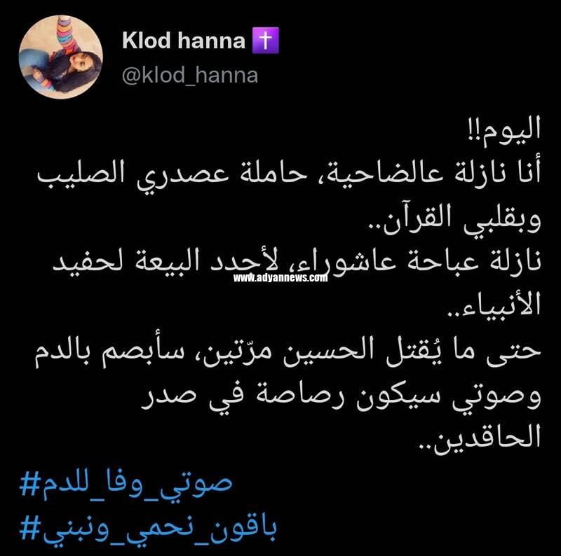 به گزارش ردنا (ادیان نیوز)، خانم خلود حنا مسیحی لبنانی در توییتی نوشت: