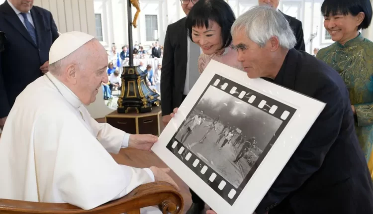 عکاس نیک اوت، عکس سال ۱۹۷۲ خود را با عنوان “ترور جنگ”، که به “دختر ناپالم” نیز معروف است، در کنار زنی که در کودکی در تصویر نشان داده شده است، در واتیکان به پاپ فرانسیس هدیه داد.