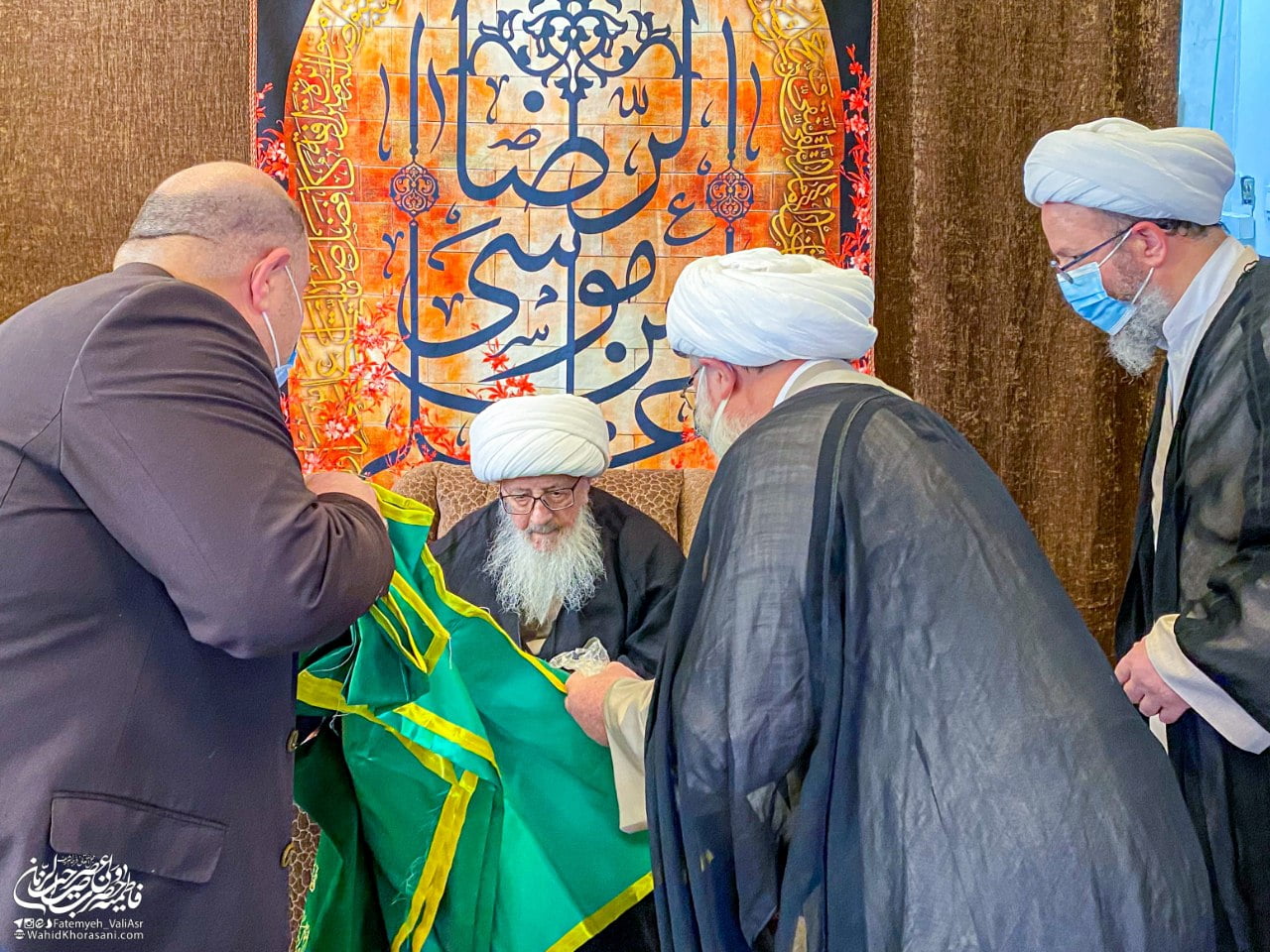 در پایان این دیدار پرچم حرم عسکریین(ع) توسط تولیت محترم سامرا به ایشان تقدیم شد.