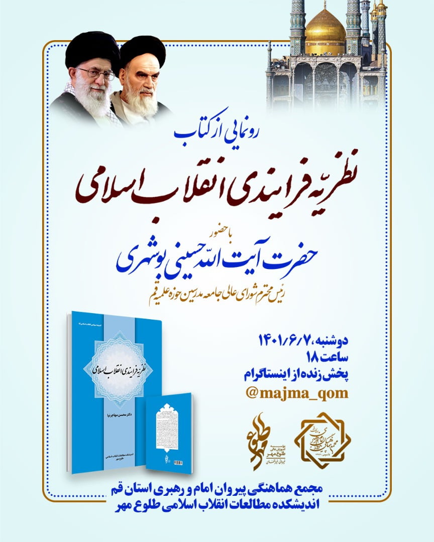 کتاب نظریه فرآیندی انقلاب اسلامی تألیف حجت الاسلام دکتر محسن مهاجرنیا دوشنبه ۷ شهریورماه طی مراسمی رونمایی میشود.