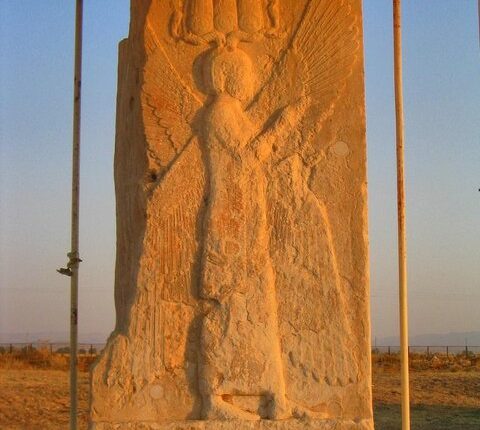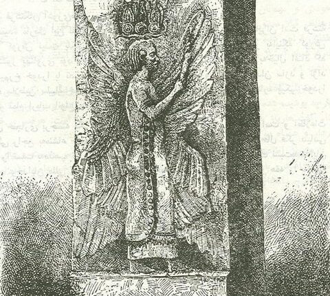 طرحی از انسان بالدار برای نخستینبار در بازدید «جمیز موریه» و «سر ویلیام اوزلی» (دیپلمات و شرقشناس) در سال ۱۸۱۱ میلادی ثبت شد، قبل از اینکه توسط «سر رابرت کارپُرتر» (جهانگرد و دیپلمات انگلیسی) در سال ۱۸۱۸ میلادی و دوباره به وسلیه «شارل تکسیه» و «پاسکال کست» (از معماران فرانسوی) در حدود سال ۱۸۴۰ میلادی به دقت طراحی و نقاشی شود.