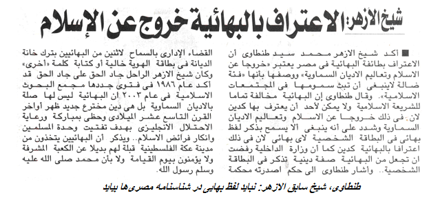 مصر و موضع سخت الازهر علیه بهائیت