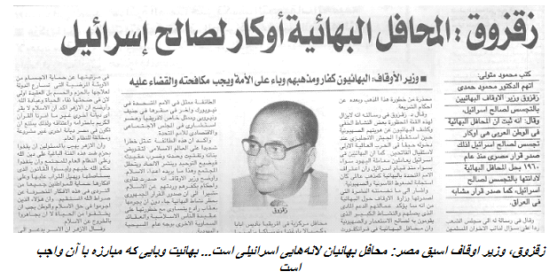 در این بیانیه تند الازهر علیه بهائیان تاکید شده است که «جنبش بهائیت یک جنبش صهیونیستی است که در خدمت منافع و اهداف صهیونیسم در جهان است و به دنبال گسترش فساد، خرابکاری و فساد اخلاقی در نقاط مختلف جهان به ویژه در جوامع مسلمان و عربی است.»