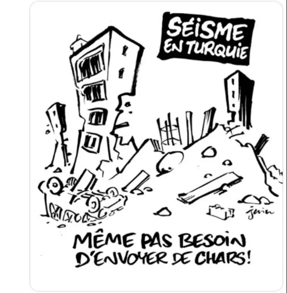 نشریه هتاک فرانسوی شارلی ابدو اینبار با انتشار یک کاریکاتور از زلزله ترکیه، خسارات مادی و انسانی در این کشور را به سخره گرفت.