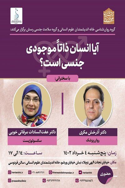 نشست تخصصی با عنوان «آیا انسان ذاتاً موجودی جنسی است؟» به همت گروه روانشناسی خانه اندیشمندان علوم انسانی و گروه سلامت جنسی رسش برگزار میشود.