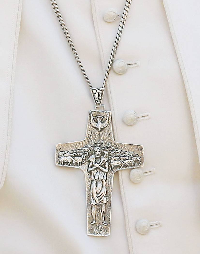 تصویر واقعی صلیب پاپ فرانسیس که نماد «شبان خوب» را به نمایش می‌گذارد.