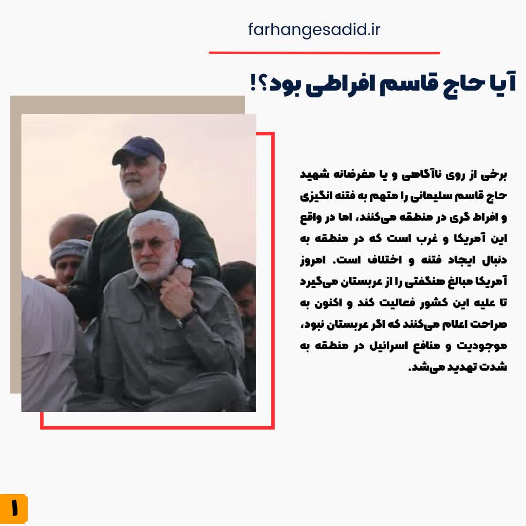 برخی از روی ناآگاهی و یا مغرضانه شهید حاج قاسم سلیمانی را متهم به فتنه انگیزی و افراط گری در منطقه میکنند، اما حاج قاسم سلیمانی با شعار وحدت از مذاهب و ادیان مختلف در دول اسلامی دفاع کرد و بدون خط کشی میان جوامع اسلامی از اقتدار، امنیت و حاکمیت مردم مسلمان حمایت و پشتیبانی کرد.