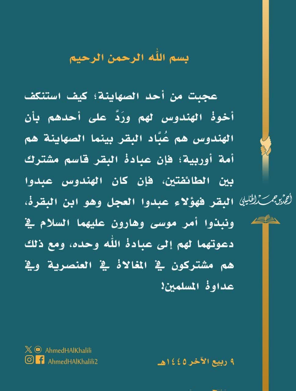 به گزارش ردنا (ادیان نیوز)، شیخ احمد الخلیلی، مفتی اعظم عمان با اظهارنظری درخصوص صیهونیستها و هندوها نوشت: