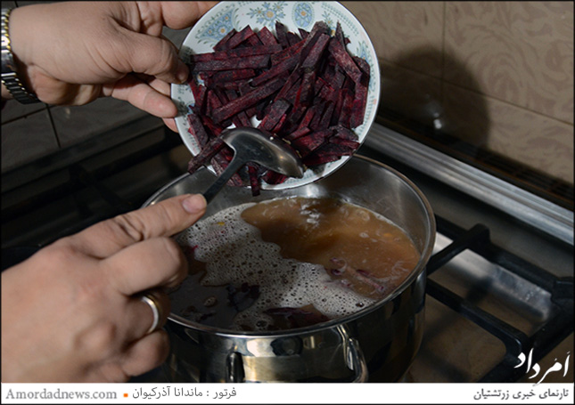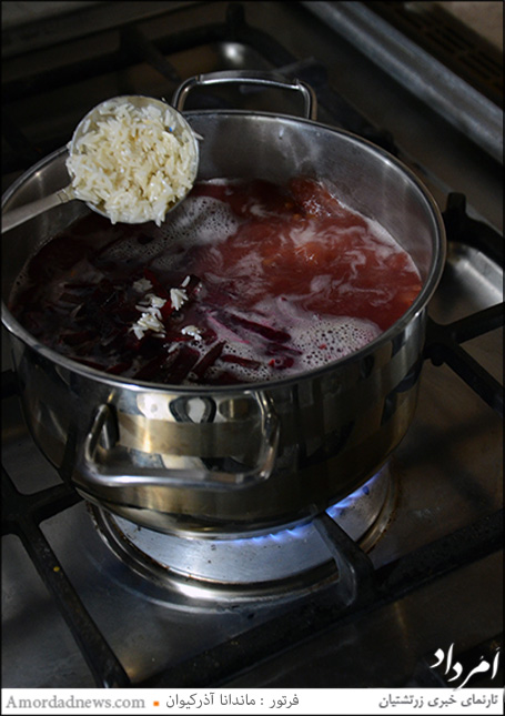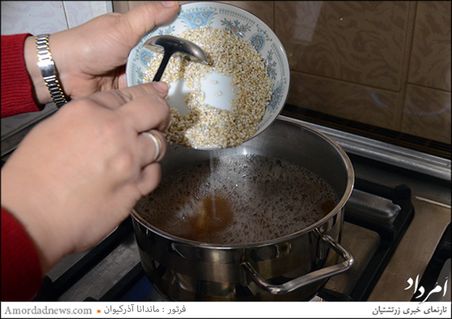 حبوبات را به طور مساوی مخلوط کرده و میپزیم. گندم و جو و چغندر را در اواسط پخت به مواد میافزاییم و وقتی مواد خوب پخته شد، کمی برنج را نیز به آن اضافه میکنیم.