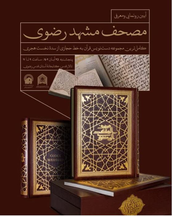 مصحف مشهد رضوی کامل ترین مجموعه دستنویس قرآن از سدۀ نخست هجری به خط حجازی رونمایی میشود.