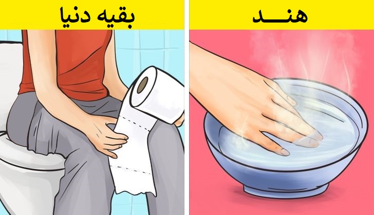 بسیاری از گردشگرانی که به هند سفر می کنند از فهمیدن اینکه در آنجا به ندرت می توان در دستشویی ها دستمال توالت پیدا کرد، شگفت زده می شوند. در حقیقت هندی ها برای شستشوی خود بعد از دستشویی کردن، از یک سطل کوچک استفاده می کنند که همیشه در کنار توالت قرار دارد.