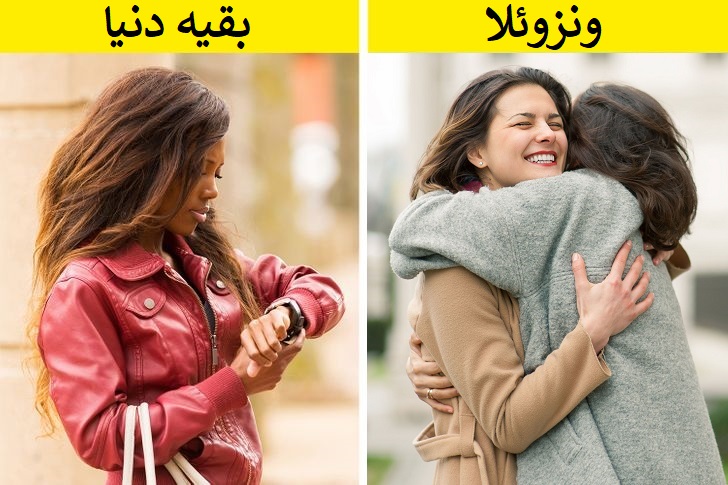 در ونزوئلا، چه یک جلسه ی کاری باشد و چه یک مهمانی، رسیدن افراد دیرتر از زمان تعیین شده، امری رایج است. ونزوئلایی ها در زمینه ی تجارت علاقه ای به شناب و عجله ندارند و در مورد مراسم های بزرگ اجتماعی هم دیر رسیدن تصور می کنند با دیر کردن تصویر خوبی از خود می سازند.