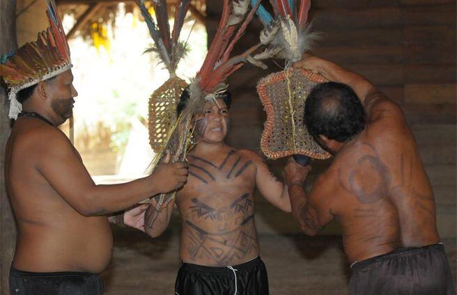 در یکی از قبایل برزیل به نام «ساتره ماوه»، وقتی پسری به ۱۸ سالگی می رسد، باید دستشکشی مملوء از مورچه های گلوله زن به دست کند و همزمان یک رقص سنتی انجام دهد. این مراسم بسیار چالشی است، چرا که مورچه های گلوله زن یکی از دردناک ترین گزش های دنیا را دارند.