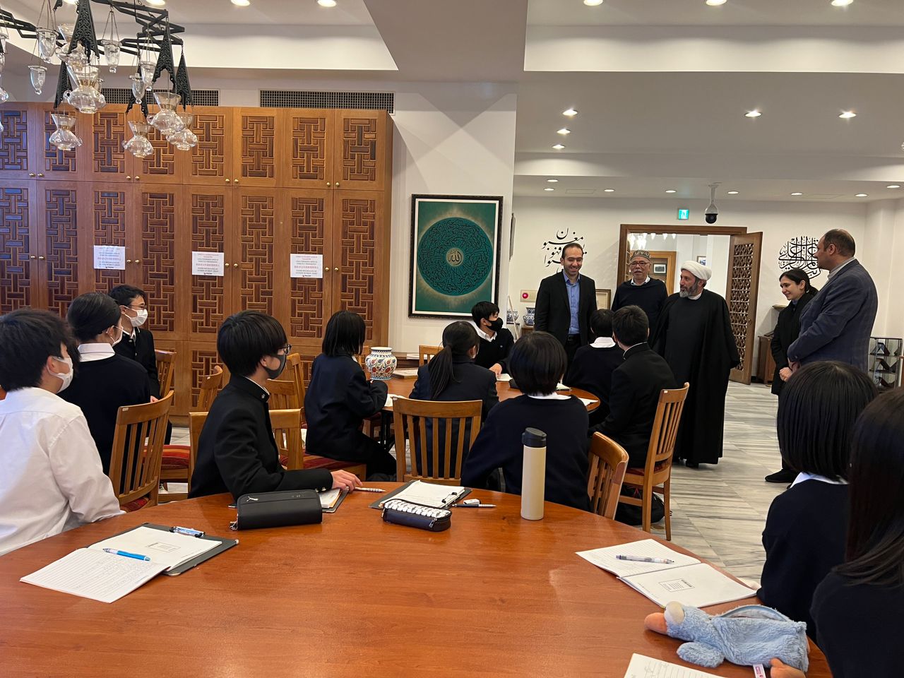 وی در جمع تعدادی از دانش آموزان حاضر در مسجد حضور پیدا کرد و با آنان در خصوص گفتوگوهای دینی اسلام و شینتوئیزم سخن گفت.