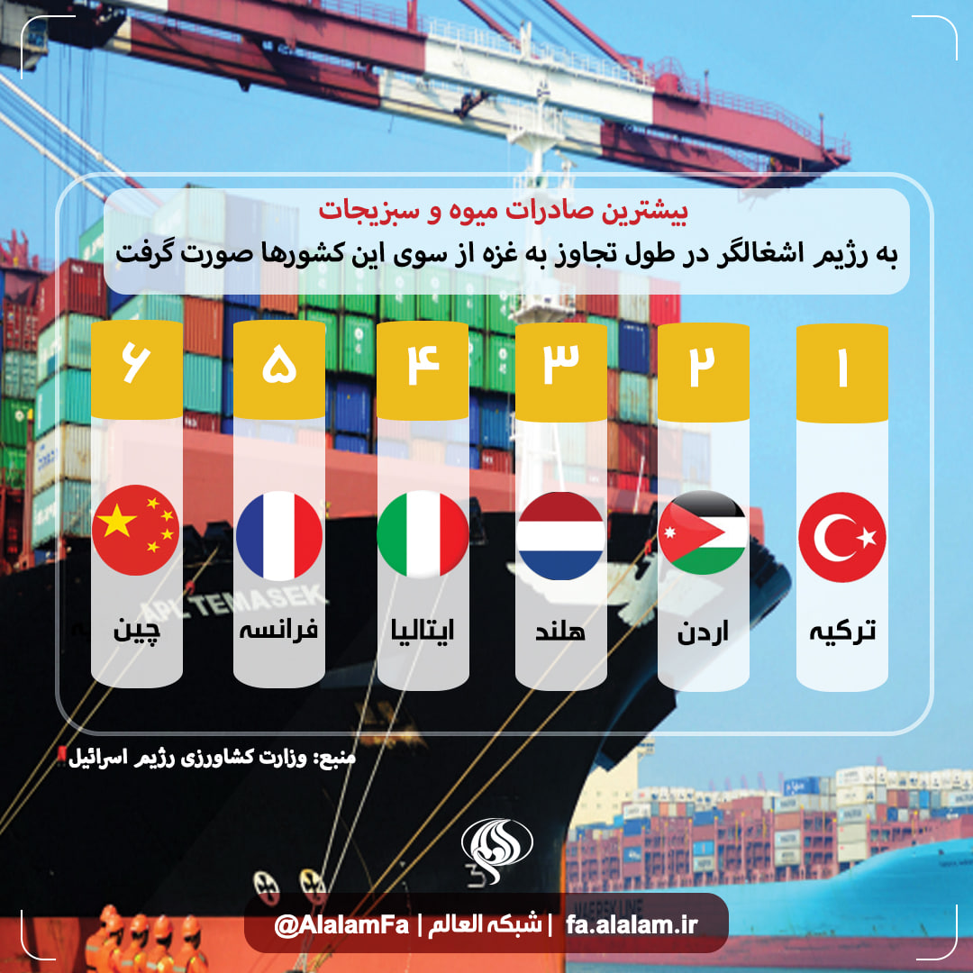 وزارت کشاورزی اسرائیل فهرستی از کشورهایی را منتشر کرد که از آغاز جنگ غزه در اوایل اکتبر گذشته تا کنون، همچنان به صادرات میوه و سبزیجات و مرکبات به این رژیم ادامه میدهند.