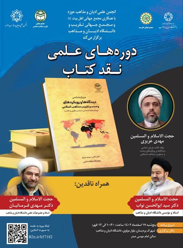 انجمن ادیان و مذاهب حوزه با همکاری دانشگاه ادیان و مذاهب با ارائه دوره های نقد کتاب “دیدگاهها و رویکردهای تقریب مذاهب” برگزار میکند.