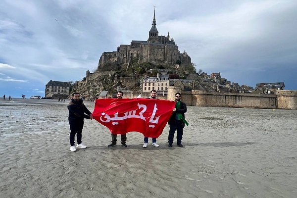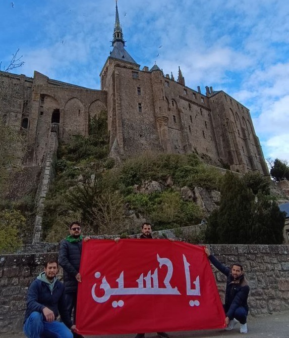 جمعی از شیعیان، پرچم حرم امام حسین (ع) را در مجاورت کلیسای سنت میشل در کشور فرانسه به اهتزاز درآوردند.