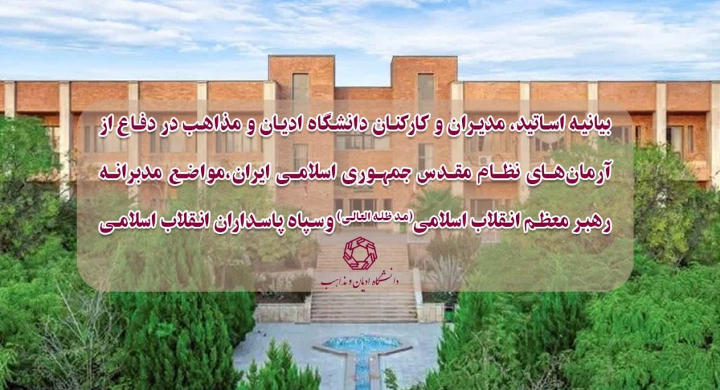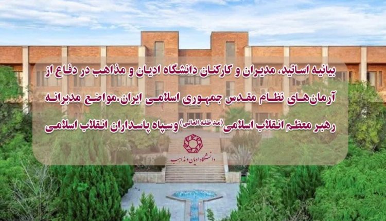 به گزارش ادیان نیوز؛ اساتید، مدیران و کارکنان دانشگاه ادیان و مذاهب در دفاع از آرمانهای نظام مقدس جمهوری اسلامی ایران، مواضع مدبرانه رهبر معظم انقلاب اسلامی (مدظله العالی) و سپاه پاسداران انقلاب اسلامی بیانیهای صادر کردند.