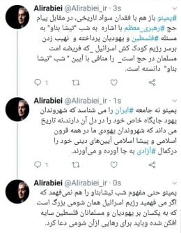 شفقنا- علی ربیعی در توییت خود نوشت: «پمپئو نه جامعه ایران را می شناسد که شهروندان یهود جایگاه خاص خود را در آن دارند، نه تاریخ می داند که شهروندان یهودی ما در همه قرون اسلامی و پیشا اسلامی آیین های دینی خود را در کمال آزادی به جا می آورند.»