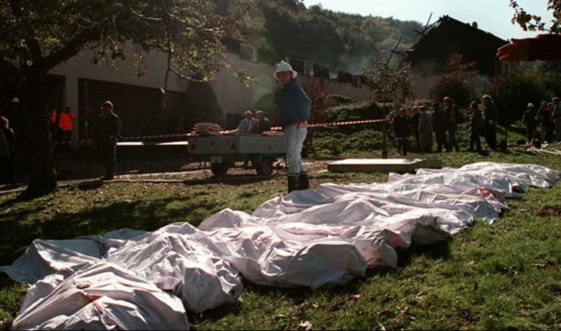 اغلب قربانیان با یک گلوله که به سر آن ها شلیک شده بود کشته شده بودند و یک کیسه پلاستیکی نیز روی صورت آن ها کشیده شده بود. همچنین جنازه ها به شیوه ای خاص قرار گرفته بودند که نشان می داد مراسمی مذهبی در جریان بوده است. روی هم رفته بیش از ۳۰ نفر به قتل رسیده و نزدیک به ۱۵ نفر نیز در طی این مراسمات مذهبی دست به خودکشی زدند.