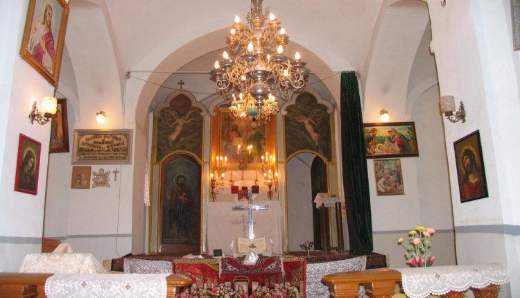 در میان جرزهای سنگی پیوسته و دیوار شمالی کلیسا، گودالی چهارگوش قرار دارد که در گذشته به گونهٔ دری تا پایین گشوده بوده اما بعدها نیمی از آن را بسته اند. درون این دریچه به محوطه ای به درازای هشت متر و پهنای ۲۵/۴متر راه دارد. این محوطه، که همانند غار یا سردابه ای است، در درون تپه کَنده شده و دیوارهای سنگی و شنی آن به گونهٔ طبیعی و بدون پوشش نگه داشته شده است. سقف سردابه به گونهٔ هلالی کَنده شده و دربارهٔ کاربرد آن می توان گفت به شکل کلیِ بیشتر مهرابه ها همانندی دارد.[۲۹]