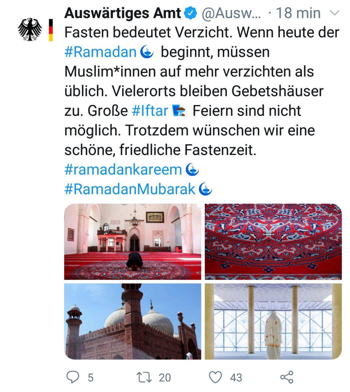وزیر خارجه آلمان در پیامی توئیتری به مناسبت ماه مبارک رمضان نوشت: روزه به معنای چشم پوشی (صرف نظر کردن) است…