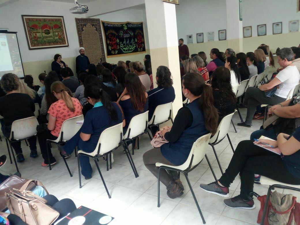اوایل که اومدم برزیل، رفتم پسرمو در مدرسه ثبتنام کنم معلمشون وقتی فهمید مسلمون هستیم پرسید : پسرتون خطرناک نیست ؟ از برخوردش خیلی تعجب کردم ، چون همین تفکر رو هم به دانش آموزان منتقل میکنه ،با رایزنی های زیادی تقریبا ۹۰ معلم به مسجد دعوت کردم ,جلسه ای که برای یک ساعت ونیم برنامه ریزی شده بود ۴ ساعت طول کشید ،سوالاتی که در مورد اسلام داشتن خیلی جالب بود یه نمونه :چرا وقتی مرد مسلمان میمیره باید زنش هم همراهش زنده دفن بشه ؟