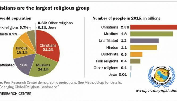 ردنا (ادیان نیوز) – مرکز تحقیقات PEW (پیو) آماری از پیروان مذاهب گوناگون را تا سال ۲۰۱۵ منتشر نمود که معتقدان به مسیحیت با ۳۱.۲% و معتقدان به اسلام با ۲۴.۱% در رده های اول و دوم هستند.
