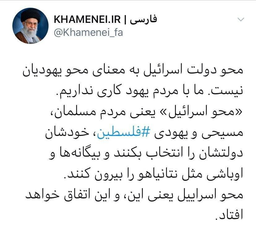 محو دولت اسرائیل به معنای محو یهودیان نیست. ما با مردم یهود کاری نداریم