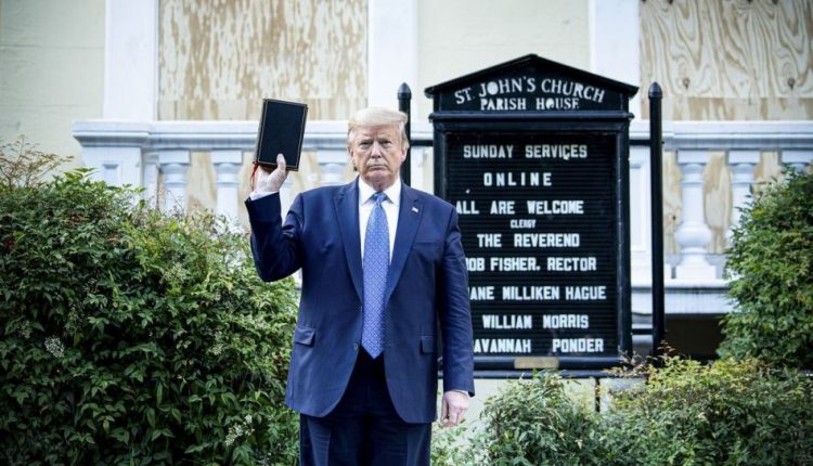 به گزارش ردنا (ادیان نیوز)، ترامپ روز دوشنبه سرزده به کلیسای اسقفی سنت جان در نزدیکی کاخ سفید رفته است . این دیدار بعد از به آتش کشیده شدن سردابه تاریخی این کلیسا توسط معترضان به قتل جرج فلوید در یک شنبه شب، انجام شده است.