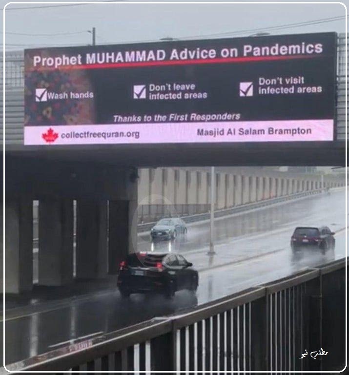 توصیه های حضرت محمد رسول الله درهنگام شیوع بیماری همگانی بر روی یک بیلبورد تبلیغاتی در کانادا مورد توجه همگان قرار گرفت.