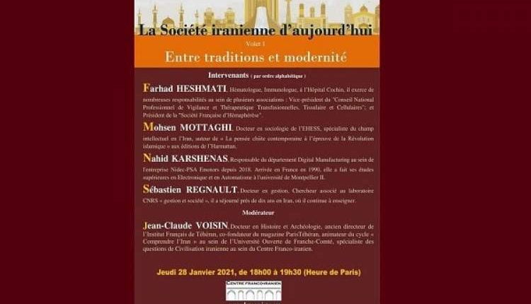 به گزارش ردنا (ادیان نیوز)، به ابتکار مرکز «ایران و فرانسه» (سمن فرانسوی، تاسیس شده در سال ۱۳۹۵) وبیناری با عنوان «جامعه امروزه ایران، میان سنت و مدرنیته» با حضور اساتید، محققین ایرانی و فرانسوی برگزار خواهد شد.