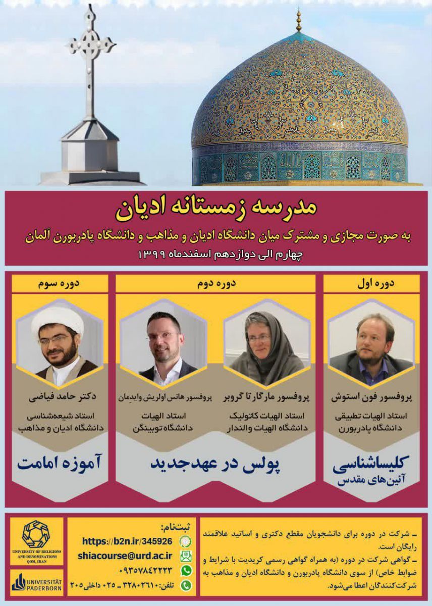 به گزارش ردنا (ادیان نیوز)، در ادامه همکاریهای دو دانشگاه ادیان و مذاهب و دانشگاه پادربورن آلمان، مدیریت همکاریهای علمی و بین المللی دانشگاه ادیان و مذاهب «مدرسه زمستانه ادیان» را به صورت مجازی برگزار میکند.