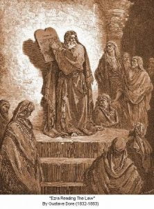 همچنین در کتاب نَحَیما، باب هشتم، آمده است که عزرای کاهن کتاب تورات را، که بار دیگر از بین رفته بود، برای مردم خواند.